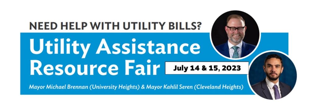 Need help paying for utilities, such as water, sewer, electric, or gas? The cities of University Heights and Cleveland Heights have partnered with the Northeast Ohio Regional Sewer District, Cuyahoga County, and others to help residents learn about available resources and sign up for specific assistance programs at a Utilities Assistance Resource Fair in July.
